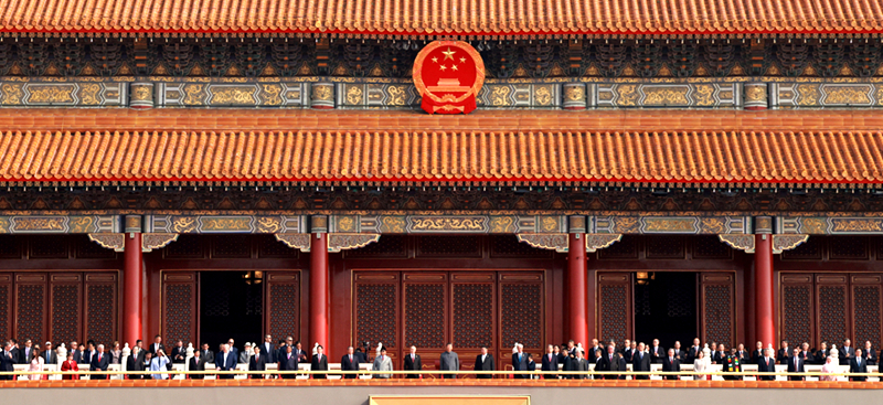 大会开始前,习近平和夫人彭丽媛在端门外广场迎接出席大会的外方代表团团长及其配偶,并同他们合影留念。