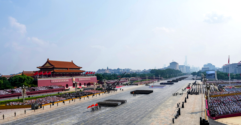 九月三日,纪念中国人民抗日战争暨世界反法西斯战争胜利八十周年大会在北京隆重举行。这是徒步方队接受检阅。新华社记者 孙 非摄