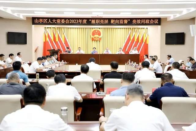 8月11日,山亭区人大常委会举行2023年度“履职亮屏 靶向监督”亮效问政会议,听取审议区政府关于“履职亮屏、靶向监督”亮诺承诺事项进展情况的报告,对部分职能部门亮诺承诺事项进展情况进行专题询问。山亭区人大常委会主任李霞出席会议,副主任李勇主持会议,副主任满孝东、张成国、王立萍、王建军及全体委员,区人大常委会各委室、区直有关部门及各镇街人大主要负责人参加会议。区政府副区长李峰到会代表区政府作报告、听取意见建议并作表态发言。