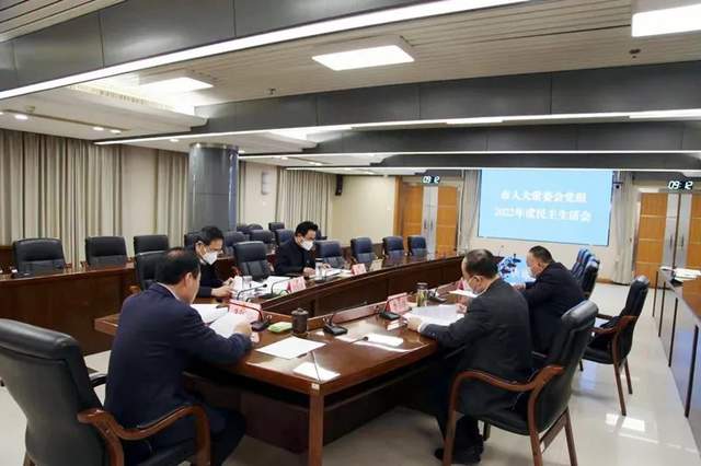 2月9日上午,市人大常委会党组召开2022年度民主生活会,以“全面贯彻习近平新时代中国特色社会主义思想,深刻领悟‘两个确立’的决定性意义,增强‘四个意识’、坚定‘四个自信’、做到‘两个维护’,团结带领党员干部群众以奋发有为的精神贯彻落实党的二十大作出的重大决策部署”为主题,紧密联系工作实际深入进行党性分析,严肃开展批评和自我批评。市人大常委会党组副书记、副主任朱国伟主持会议。党组成员、副主任韩惊涛、李书亭、孙恒,党组成员、秘书长张伟出席会议。
