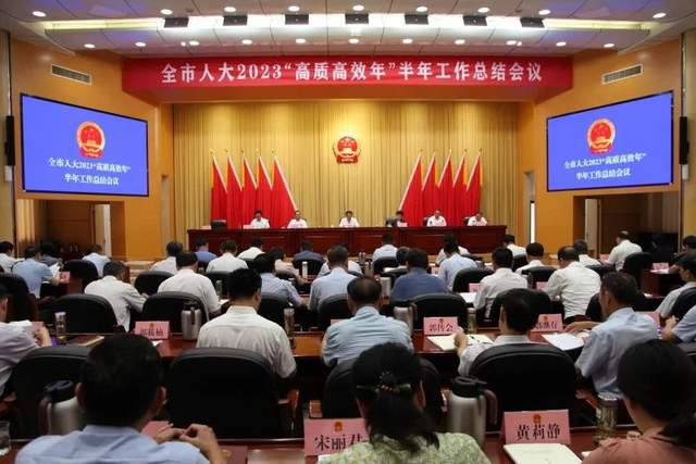对于下半年工作,会议要求,要统筹布局、加快节奏、深谋快动、紧抓快办,高标准开展主题教育,高质量推进调查研究,高质效推进职能工作,高品质推进创新创优,高起点推进统筹协调,高水平加强作风建设,确保圆满完成全年任务目标,全力推动全市人大工作再攀新高、再创佳绩!